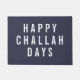 Add some holiday humour to your entryway this season with this punny doormat. Design features "Happy Challah Days" in modern white block typography on a smoky blue background.