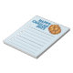 Notepad design features an original marker illustration of a loaf of braided Hanukkah challah bread, with HAPPY CHALLAH DAYS in a fun blue font.