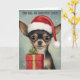 Spread joy and laughter this Christmas season with our delightful "Happy Chihuahua Santa with Gift" Christmas card, featuring the heartwarming artistry of Greg Collins. This charming image captures the festive spirit as a smiling Chihuahua dons a Santa hat and eagerly presents a gift. The playful innocence and holiday cheer radiate from this adorable scene, making it the perfect card to share the joy of Christmas with friends and family. Send warm wishes and festive greetings with this endearing portrayal of holiday happiness. Make your Christmas greetings extra special with the whimsical charm of a Santa-hat-wearing Chihuahua, and let the spirit of the season shine through in every heartfelt message.