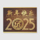 Golden paper-cut of a Snake into a golden circle as 0 of 2025 + golden Chinese wishes + Happy New Year (in English) + wooden background (image printed). Design on horizontal magnetic card with textured golden paper (image printed) inside. Matching greeting card, holiday postcard and sticker. Perfect for Chinese New Year of the Snake 2025. --------- "The snake (蛇) is the sixth of the twelve-year cycle of animals which appear in the Chinese zodiac related to the Chinese calendar.