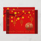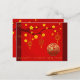 Stylised illustration with yellow "apricot" blossoms, Asian lanterns with red background. Design on horizontal holiday postcard with custom year 2022 and "HAPPY CHINESE NEW YEAR" in yellow + a small "golden" Rabbit paper-cut (image printed) in the corner. You can easily change text (font colour, size and position) + delete the Tiger illustration if you want by clicking the customise button. Matching greeting card. Perfect for Chinese New Year of the Rabbit 2023.