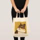 The printing came out very well, better than I had anticipated. The natural color fabric is sturdy with strong seams and comfortable handles. This tote fits easily over my shoulder. As it is filled, the bottom flattens out--very cool! I would buy this product again. This grocery tote holds a lot of groceries! The image quality was very good. The colors were a little darker than I had expected. The darkness may have been due to printing on a natural color fabric rather than on white. The cat design is attractively centered on the tote. The spirit of the design is very lively, just as it appears on the Zazzle website.
