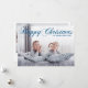 Happy Christmas Blue Elegant Cursive Script Photo Holiday Card