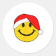 Happy Christmas Happy Face With Santa Hat Classic Round Sticker