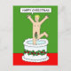 Happy Christmas Man Jumping From a Cake Postcard