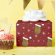 Repeat pattern of a happy Christmas potato in a Santa hat. Deep red colour background with white snowflakes.
