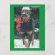 happy christmas rottweiler w/santa hat, bow, snow postcard