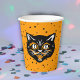 Happy Classic Halloween black Cat Face on Stars Paper Cups