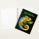 This planner is black with vibrant green dots and a happy colourful lizard in colours of blue, green, orange, and yellow with big eyes holding a leaf on a branch. Customise your text with the template.