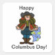 Here's the other version we have of Christopher Columbus. We didn't give him any moustache this time and he looks a little younger. These stickers say "Happy Columbus Day." However, you're free to change the wording and customise this to say whatever you'd like it to. TO CUSTOMIZE: (1) Click the "Customise It button. (2) Click "Add Text. (3) Type What You Want (3) To change the font styles, click the "F" box and a pop-up menu will appear with lots of font designs. (4) To change the font colour click the black box and another pop-up menu will appear with lots of colours. (5) To size text (or images) use the + and - buttons. (6) To move text (or images) around, use the arrow keys or... go to the top left and click into the "Design" mode. Your mouse then makes moving things easier.