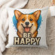 Happy Corgi Cute Dog Lover Design for Positive Cushion