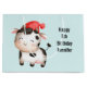 Gift bag with an adorable image of a black and white spotted cow wearing a red hat.
