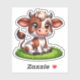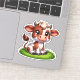 This sticker shows a brown-and-white cow, sitting down in a grassy pasture, smiing. Perfect for nurseries, lunch boxes, mugs, laptops, bicycles or scooters...just about any place that is fun, especially places kids love. Available in many sizes.