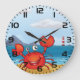 Keep time with a touch of seaside charm with this cartoon crab clock. The design features the adorable, smiling red crab prominently on a sunny beach, with the blue ocean and a distant striped lighthouse providing the perfect coastal scene. This decorative clock is ideal for adding a fun nautical theme to a kitchen, child's room, bathroom, or beach house decor. It’s a great functional piece of wall art for anyone who appreciates cheerful marine life and coastal accents.