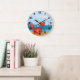 Wall Clock, 25.4 cm Round Black Wooden Frame