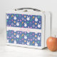 This is a standard metal lunchbox that appears to work just fine. We designed this box ourselves with an uploaded photo and custom text on the front and back. It looks absolutely beautiful except the front of the lunchbox is not centered like it shows in the photo. The print borders don't align with the inset flat part of the box where the preview photo online showed it perfectly centered in there. The back looks nice and centered though.