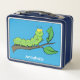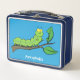 Happy cute green caterpillar cartoon illustration metal lunch box
