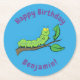 Happy cute green caterpillar cartoon illustration round paper coaster