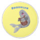 This happy harp seal is playing a harp in cute cartoon illustration style for kids and kids at heart.