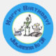 Happy cute robots trio cartoon on blue background. Robots are cool!