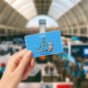 Happy cute robots trio cartoon ID badge