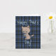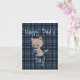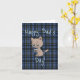 Father's Day card with funny cat drinking coffee and a blue plaid background, by CharacterAlley