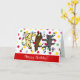 Happy Dancing Labrador Trio Happy Birthday Card. Three Labs are jumping with joy. Yellow Labrador and Chocolate Labrador and Black Labrador are all included. We have various designs. You can customise text as you like. Remove sample text and insert yours. Created by Naomi Ochiai from Japan.