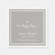 The words Oh Happy Day in a script font style with a small heart of love, with your own names and special date, on a grey background...these custom wedding napkins will bring a personalised flair to your big event