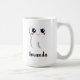 A mug with a drawing of a big white tooth with a cute kawaii smile and big happy eyes.