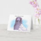 This is a humorous card for someone finalising their divorce. It depicts watercolour artwork by Australian artist Donnalee Collins. The front cover has the words "Happy divorce day" with the face of an Australian magpie and inside shows a swooping magpie with the words "Can I swoop em now?". The Australian magpie is renowned for swooping people as they pass by to protect its young.