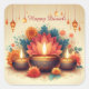 Happy Diwali Diya Lotus Festival of Light Floral Square Sticker