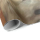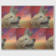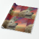 Beautiful wrapping paper profiling a happy golden retriever with his head resting on the legs of a happy human