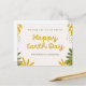 This vibrant Earth Day postcard is designed to celebrate our planet with an upbeat and positive message. The front of the card features a crisp white background, which provides a clean canvas for the lively elements of the design. Centred on the card is the phrase "Happy Earth Day" written in a flowing, cursive script that exudes a sense of joy and celebration. The letters are coloured in a rich golden hue, which stands out boldly against the white backdrop.