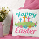 A beautiful Happy Easter throw pillow featuring pretty pastel teal and pink with a cute floral border in front of Christian crosses. A gorgeous religious Easter design for a church or religious family.
