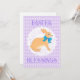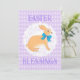 Adorable. bunny with a blue bow on a lacy doily against a pastel purple argyle background! What could be cuter than that? Fun, fancy and sweet, the text on the front and back of the card can be customised to any message you prefer. Birthday, invitation, birth announcement, thinking of you, so many possibilities. Perfect for all age groups .