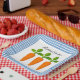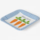 Create a festive spring or Easter holiday tablescape with a farmhouse-style paper plate. This dinner plate features three carrots in the centre of a creamy white background with a blue gingham border. View other carrot designs at my Spring Cards and Gifts collection.