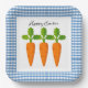 Happy Easter Blue Gingham with Carrot Design Paper Plate