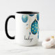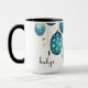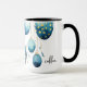 Customise this hot beverage mug with Bondi Blue and Gold Polka Dotted easter eggs hanging from gold string. Elegant modern and contemporary design. Add your name and the name of your favourite hot beverage. You can even change the text to Happy Birthday, Happy Easter and so much more. Enjoy!