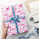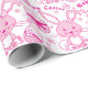 Fun bright pink Easter patterned graphic wrapping gift paper. Cute bunny rabbits, Easter eggs, flowers, and the greeting Happy Easter wrapping gift paper in shades of pink and white. Great for Easter gifts for girls or women. Customise with your own background colour if required currently white. Unique graphic art and pattern design by Sarah Trett.
