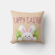 This fluffy white rabbit is peeking out of his rabbit hole to wish you a Happy Easter. On the back of the pillow there is a full view, repeating pattern of the rabbit. The background colour, a soft beige, can be customised.