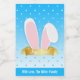 Cute bunny ears on blue polka dots background. Customise with your text.