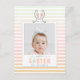 Sweet Easter Holiday Post Card with cute bunny ears design elements. Pastel rose, orange, yellow and green colours are great for the springtime holiday of Easter. This bunny postcard also has a return address and a custom message on the back. Just add your family photo and names!