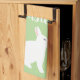 Easter kitchen towel with a teal chevrons patterned Easter eggs and bunny design.