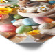 An Easter bunny amid spring flowers and colourful eggs.