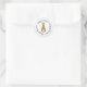 Here’s a whimsical sticker with the silhouette of a brown rabbit. The text has a border of soft pastel colours.
