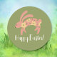 This Bunny sticker will add a whimsical touch to your Easter Baskets and gifts. A cute pink and yellow hopping bunny on a green background with customisable Happy Easter text is just what your holiday needs this year. This is part of the Happy Easter Collection in the S.Marie_Holiday Collection....look for coordinating party supplies.