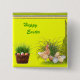 Happy Easter design is showing a basket full of eggs and a hen with her cute baby chicks, on a yellow background. The image is available for a variety of products. Text adding is optional.