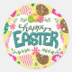 Happy Easter Colourful Easter Eggs Pattern Yellow Classic Round Sticker
