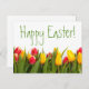 Happy Easter Colourful Spring Tulips White Back Holiday Postcard
