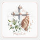 Happy Easter, Cross, Lilies and Praying Hands Square Sticker